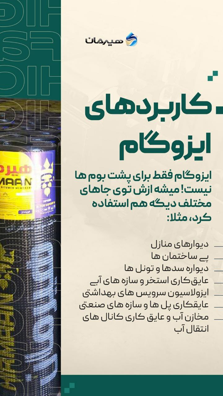 ماندگاری ایزوگام پلیمری یکی از مشخصه های این نوع عایق رطوبتی است.